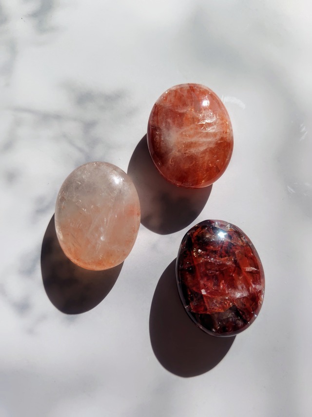 Red ヘマタイトインクォーツ パームストーン 1個 ※こちらのセットにはティーライトキャンドルがお一つ付きます。 ティーライトキャンドルは、形や色は様々です。こちらでお選びしてお一つお届けいたします。 クォーツの中にヘマタイトが合わせった神秘的で美しいヘマタイトインクォーツです。 どの色も内包している万能なクリアクォーツ そこに合わさったヘマタイトのグラウンディング力と活性化の力が あなたの冷静さと行動力を上げ、自己成長をサポートしてくれる。 中には虹が見えるものもあり、あなたの幸運を祝ってくれています。 あなたに合う一つをお選びください。 (左、中、右の三種類ございます。) ~サイズ~ 左:約35㎜×約28㎜×約17㎜ 中:約35㎜×約30㎜×約16㎜ 右:約35㎜×約30㎜×約17㎜ 〇ティーライトキャンドル1個:約6~8時間程度の燃焼時間です。 芯:コットン芯 使用ワックス:ソイワックス ※天然石の性質状、多少の傷やざらつきがある場合がございますが、不良品ではございませんので、あらかじめご了承いただき、ご購入ください。 ※キャンドルの燃焼時間については、灯す環境や灯し方等に大きく左右されます。ご参考までにご利用くださいませ。 ※キャンドルは、ひとつひとつ手作りのため、仕様のバラつきが多少ございます。ご了承くださいませ。 ※ソイワックスは、大豆から抽出したワックスです。アレルギーをお持ちの方は、医師にご相談の上、ご使用ください。万が一異常を感じられた場合は、使用を中止し、医療機関で受診してください。