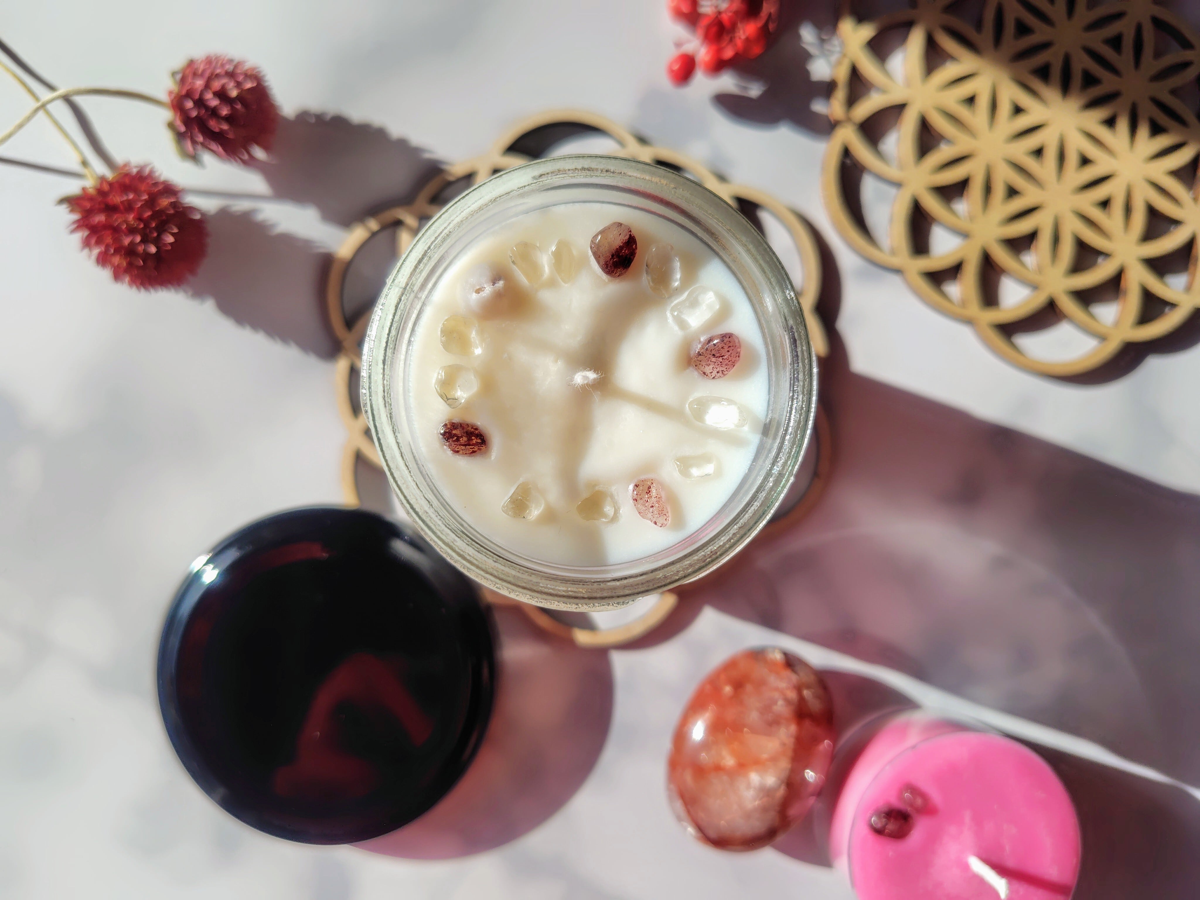 °˖✧✧˖°特別企画セット°˖✧✧˖°Anniversary RED ボタニカルキャンドル&ヘマタイトインクォーツのセット No.2