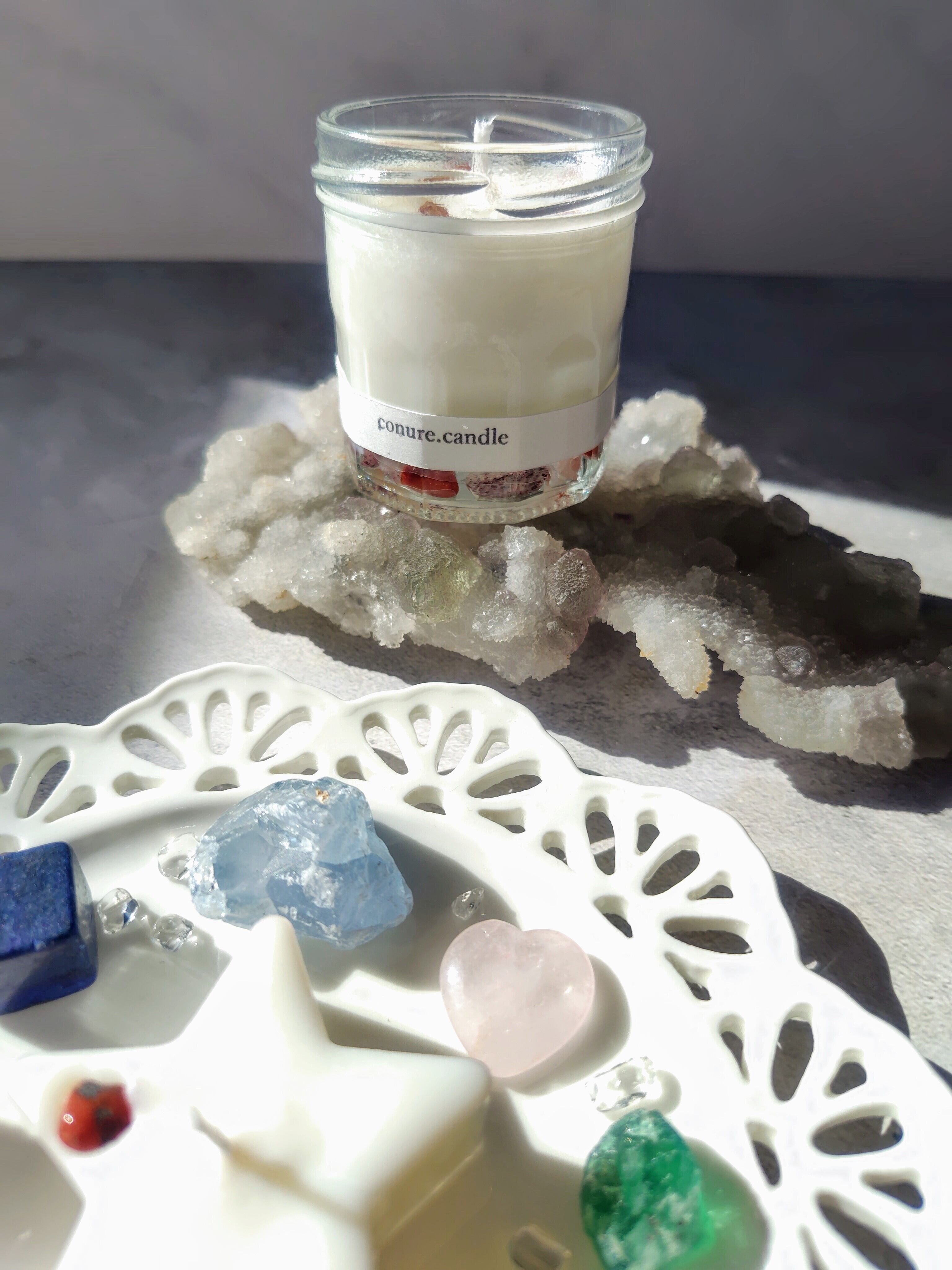 ※お皿、クリアクォーツのさざれ、キャンドル下の天然石は付きません。