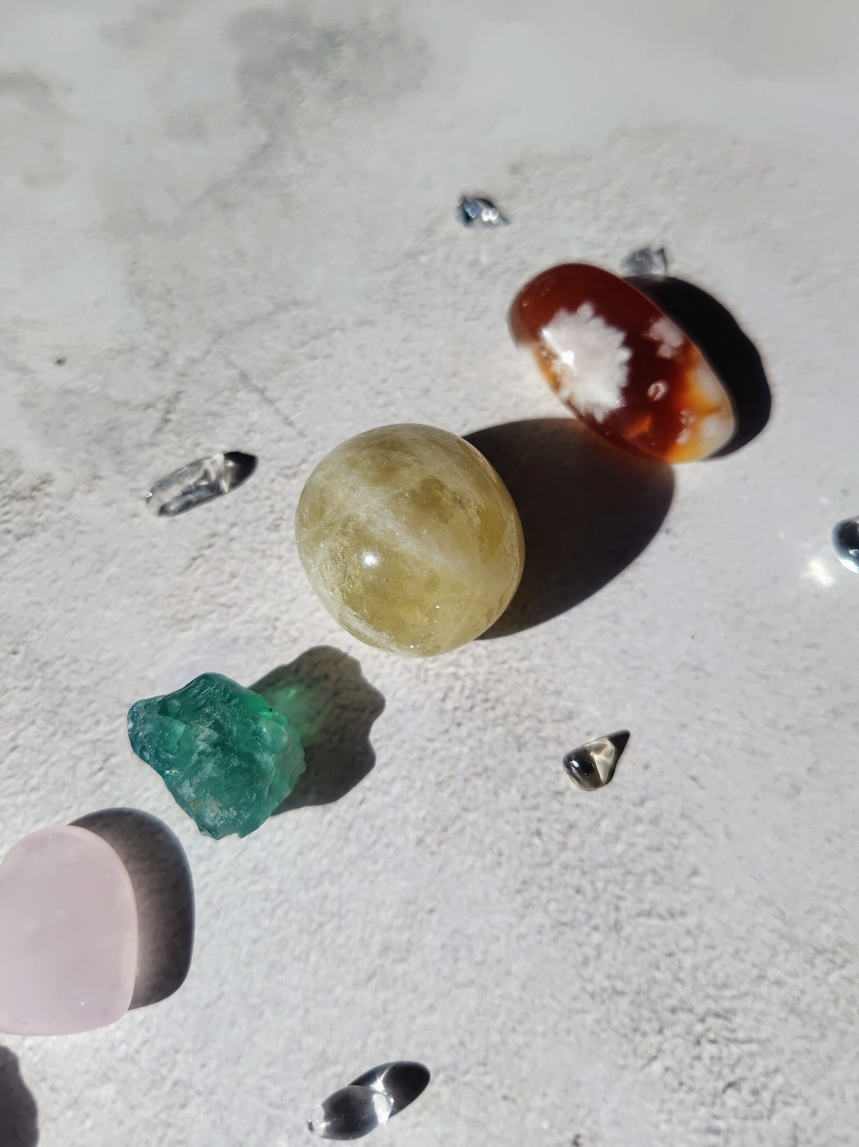 チャクラカラーに合わせて、体に置くのも良し、握るのも良し、氣になる天然石を持ち歩くのも良し、自由な発想であなたの身近な世界に色とりどりなエッセンスを。