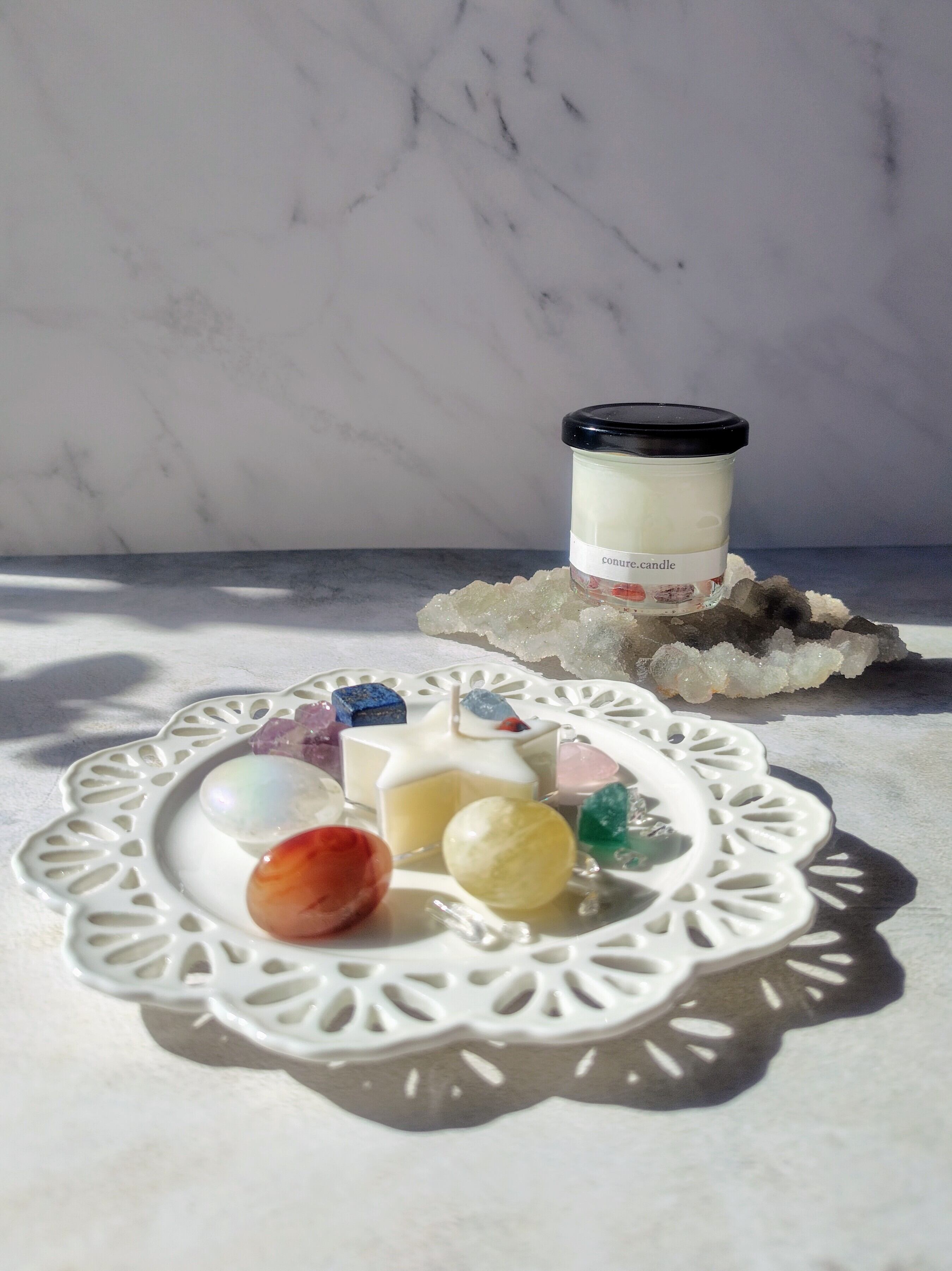 ※お皿、クリアクォーツのさざれ、キャンドル下の天然石は付きません。