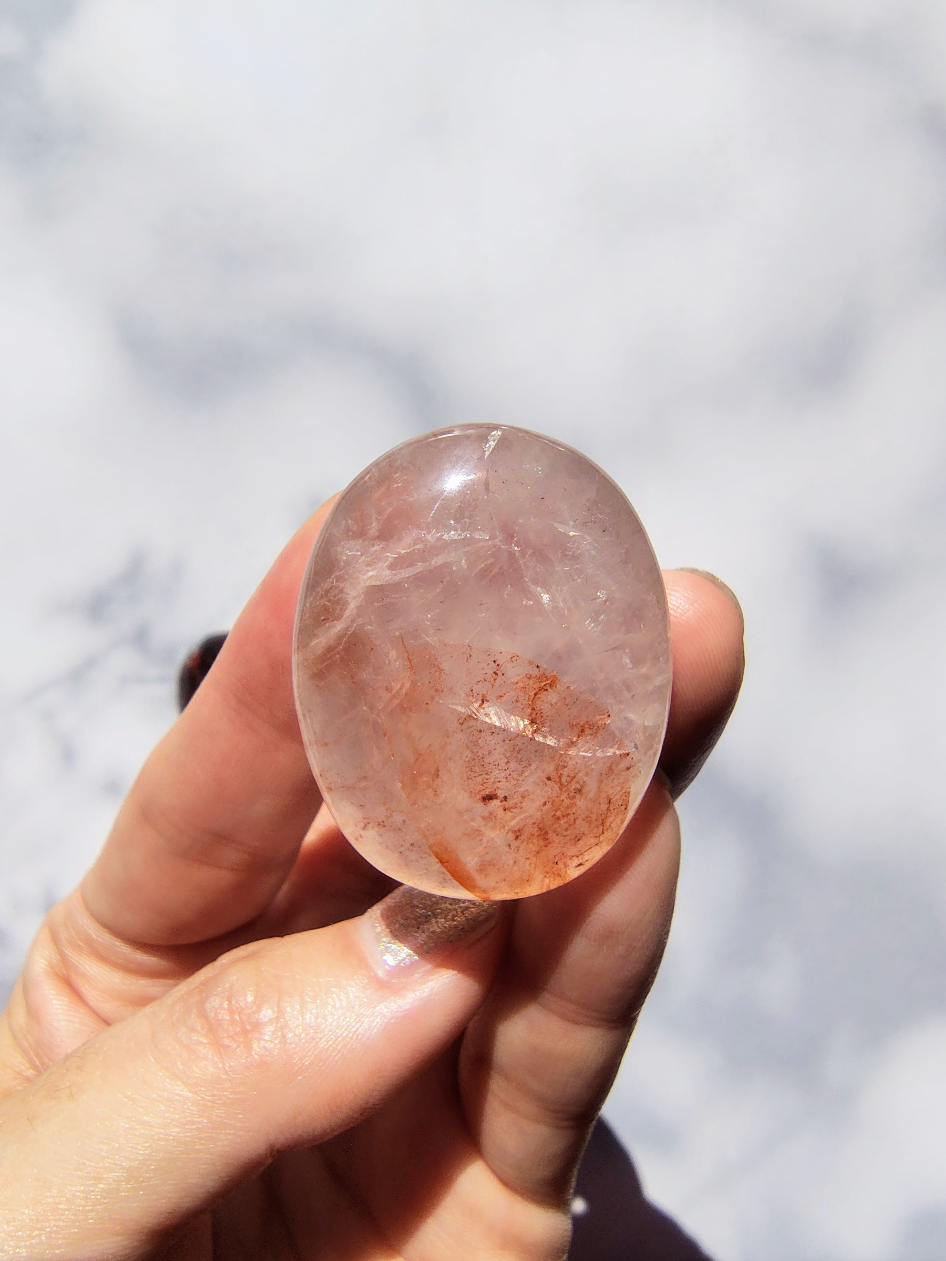 クォーツの中にヘマタイトが合わせった神秘的で美しいヘマタイトインクォーツです。