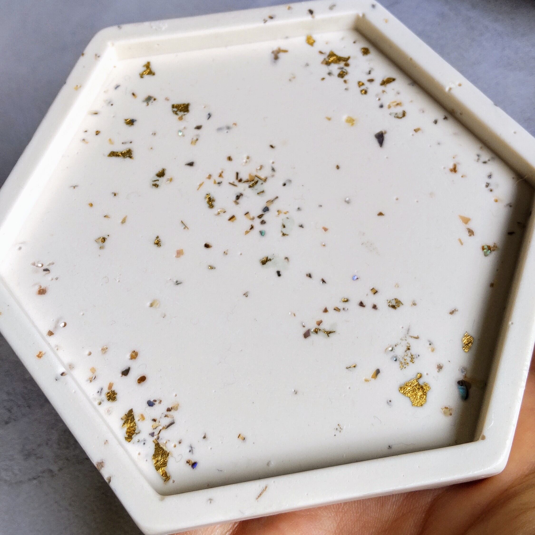 ジェスモナイトは水性樹脂で、石のような質感です。キャンドルの台座として活躍してくれたらいいなという思いから、ご用意いたしました。