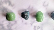 緑や薄青などが混ざり合う様子が深い癒しをもたらすモスアゲート(3個)とグリーンの素朴で無垢な印象のグリーンアベンチュリン(3個)のタンブルセットです。