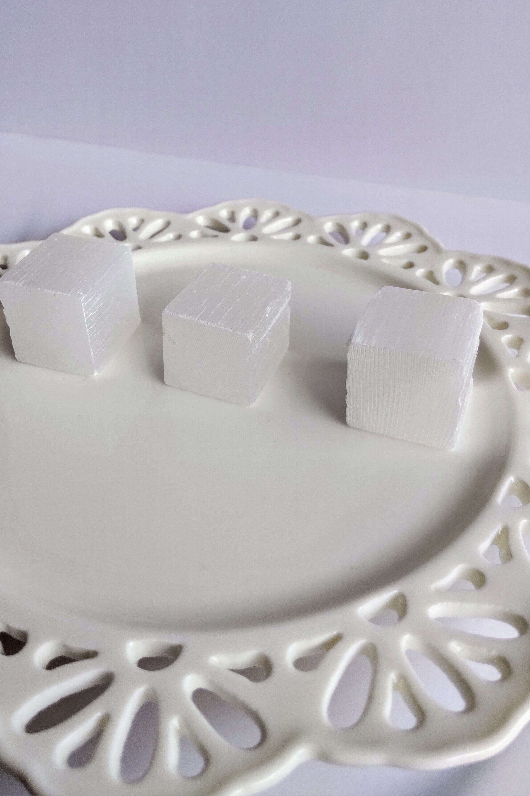 角砂糖のような整った形のセレナイト(3個)セットです。天使や女神を感じさせる穏やかで優しい透き通った感覚のセレナイトたちです。