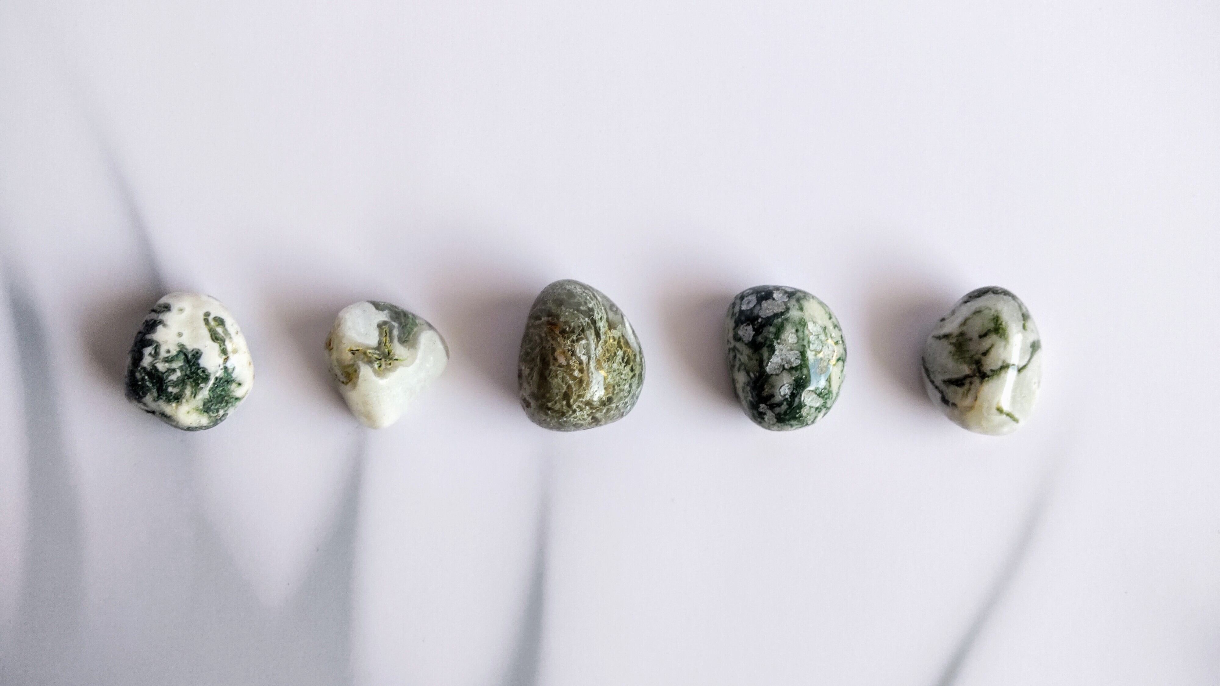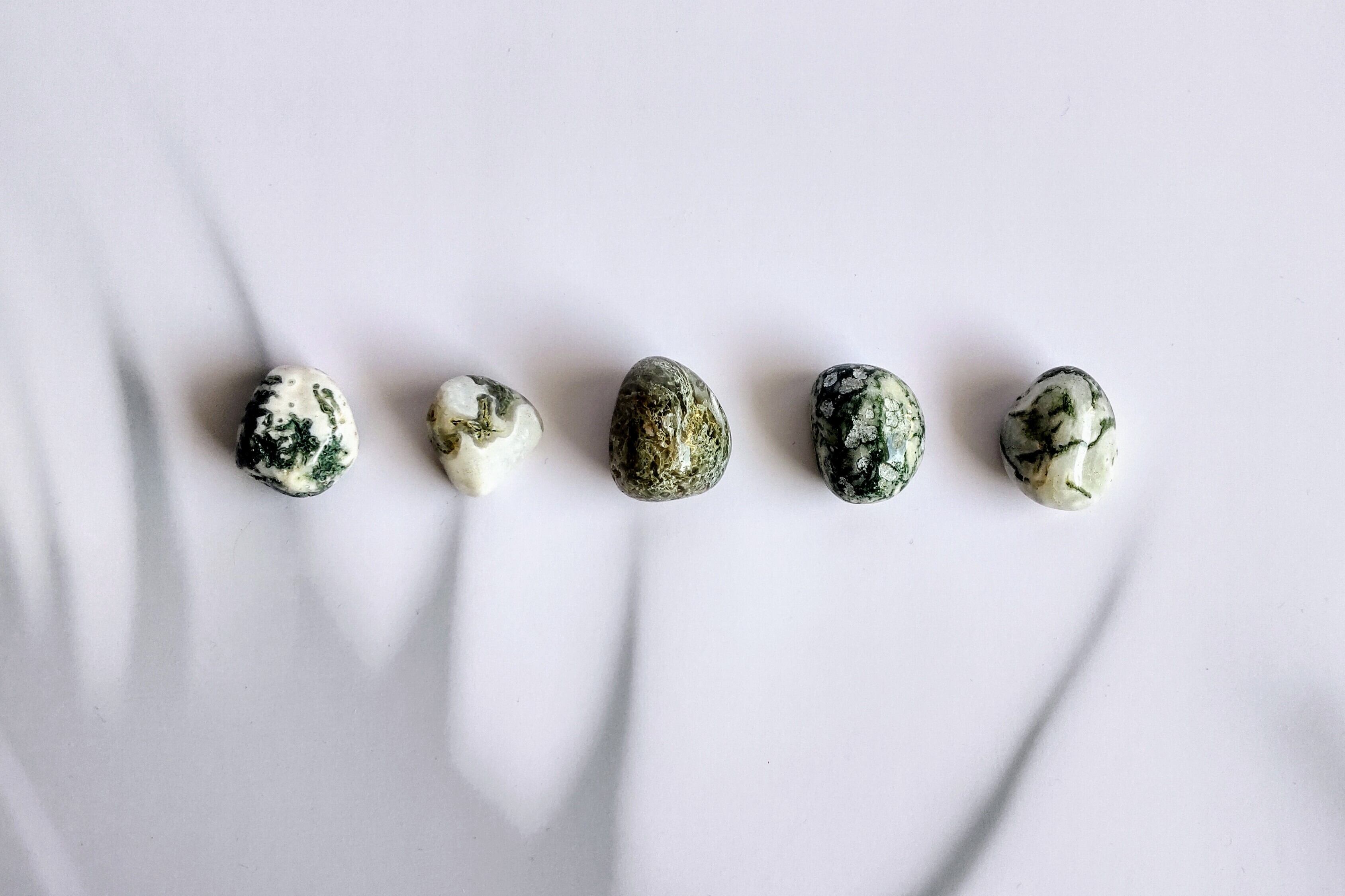モノづくりに必要なインスピレーションを授けてくれるモスアゲートのタンブル5個セットです。