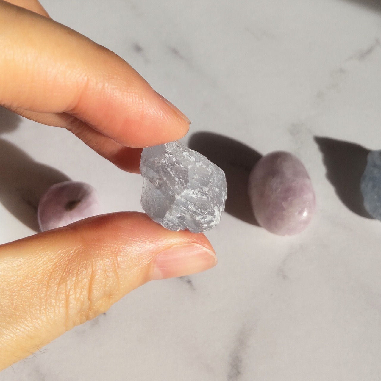 セレスタイトは、空のような水色が印象的な石。ガーディアンエンジェルと繋がる石でもあります。怒りなどのネガティブな感情を軽減し、心を穏やかにしてくれると同時に、人を思いやる心を育む助けにもなってくれます。心を癒し浄化し、雲一つない空のような心へと導いてくれます。