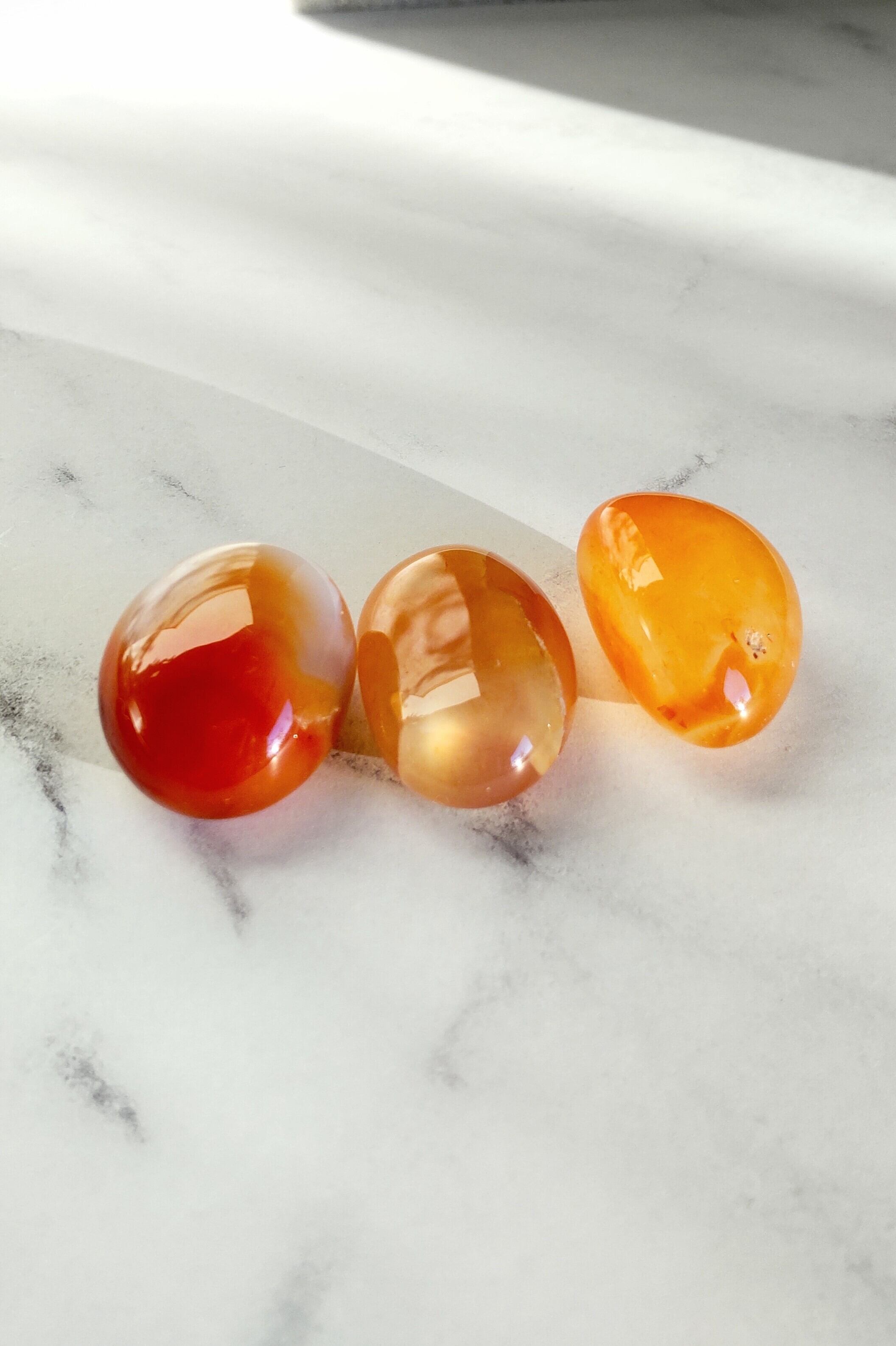 カーネリアンのタンブル(3個)とゴールデンヒーラーのタンブル(3個)のセット。